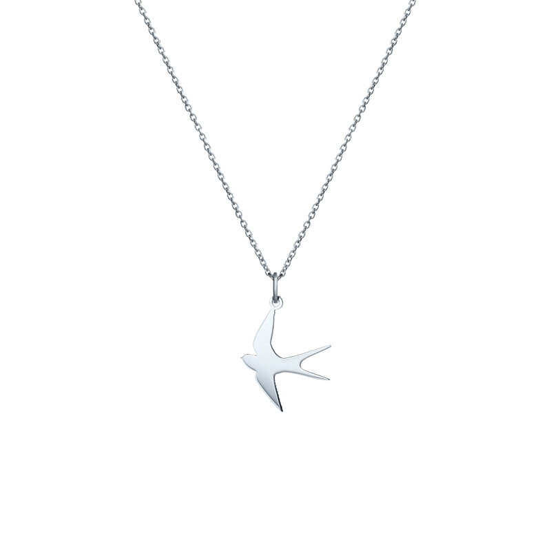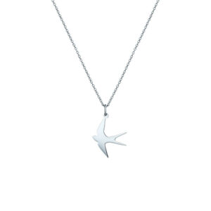 Colar Andorinha em prata com acabamento polido. Fio de prata 925 com 42 cm ajustável aos 40 e 38 cm e pendente com cerca de 1,3 cm.