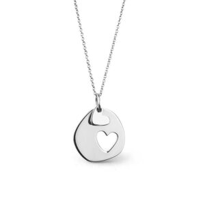 Colar Coração duplo medalha recortada prateado.