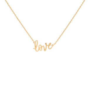 Colar love com acabamento polido em prata dourada. Fio de prata 925 com 42 cm ajustável aos 40 e 38 cm e pendente com cerca de 2 cm.