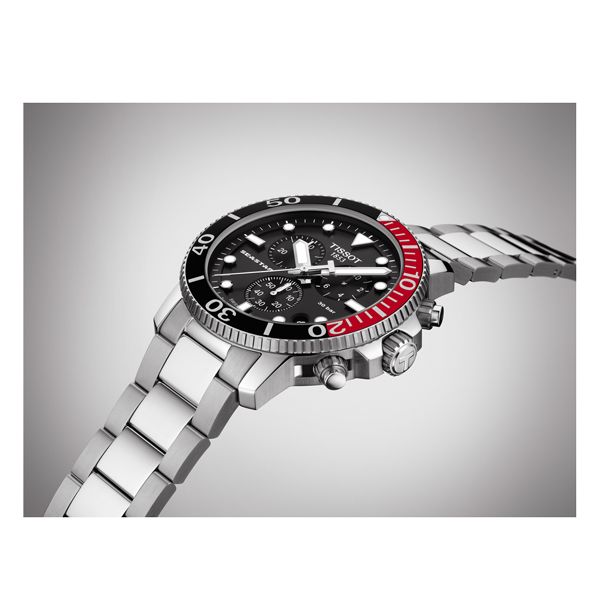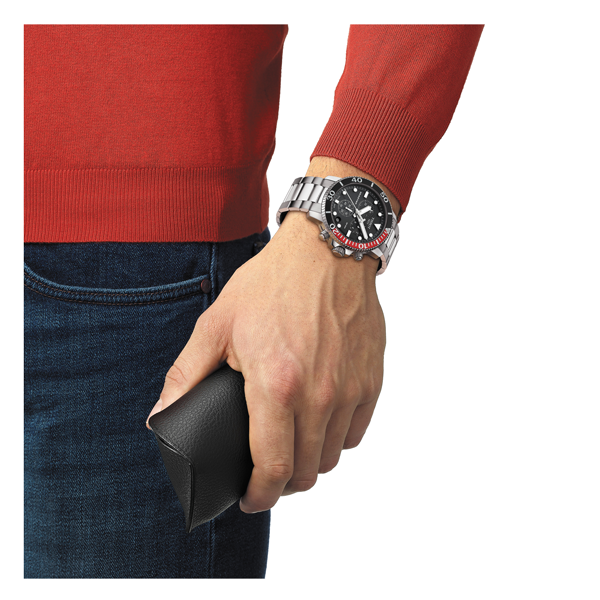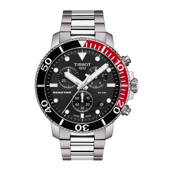 Tissot Seastar 1000 combina estilo e desempenho sem comprometer nenhum dos dois. A inspiração para o mergulho molda a aparência e a funcionalidade deste relógio. Ele mantém o seu desempenho a uma pressão de 30 bar (300m / 1'000 pés), combinando desportos subaquáticos e a preferência por um sofisticado relógio suíço. O tema do mergulho continua através de elementos como uma luneta unidirecional, uma pulseira com fivela de segurança para mergulhadores, além de ponteiros e marcações luminescentes.
