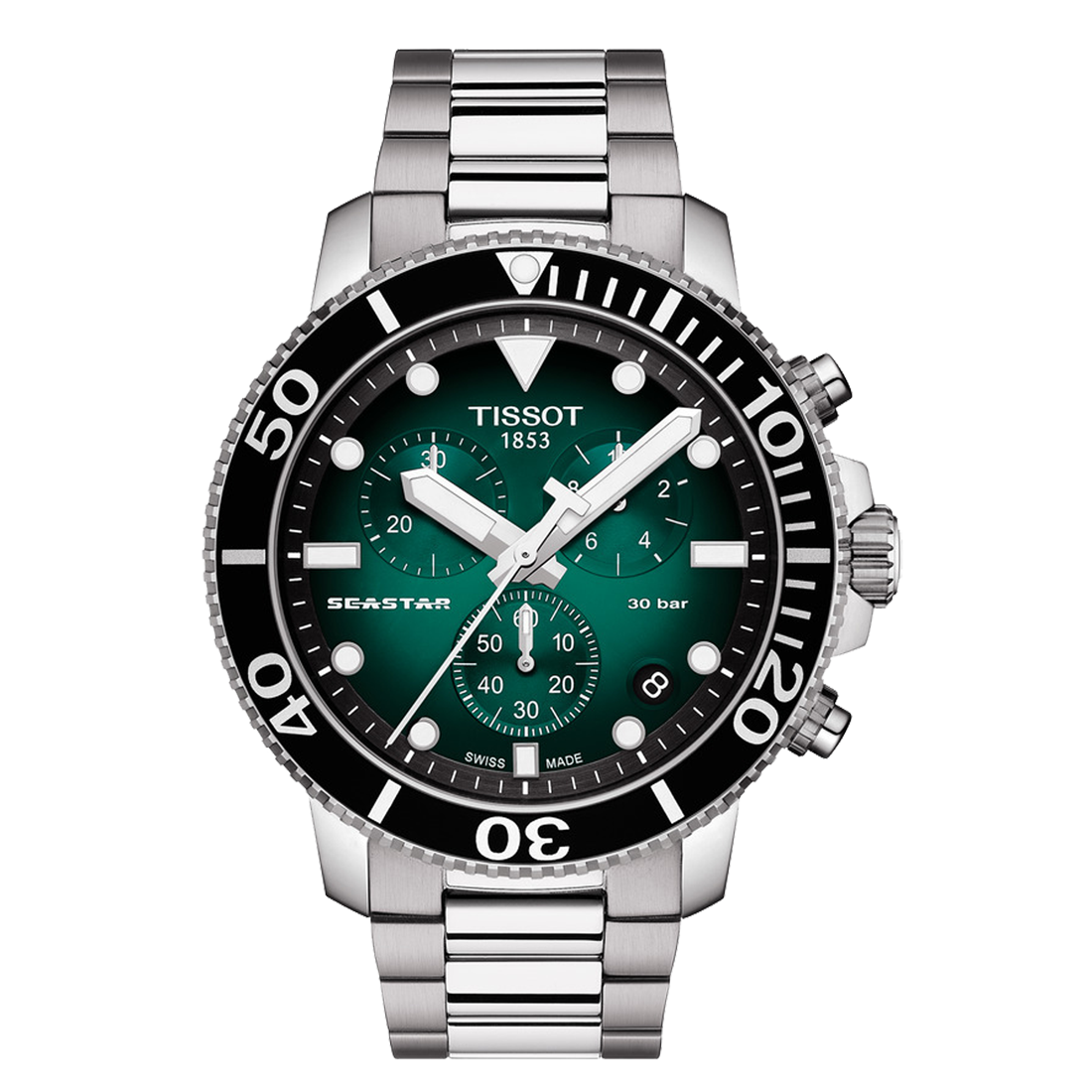 • Relógio Tissot Seastar com bracelete metálico e mostrador verde